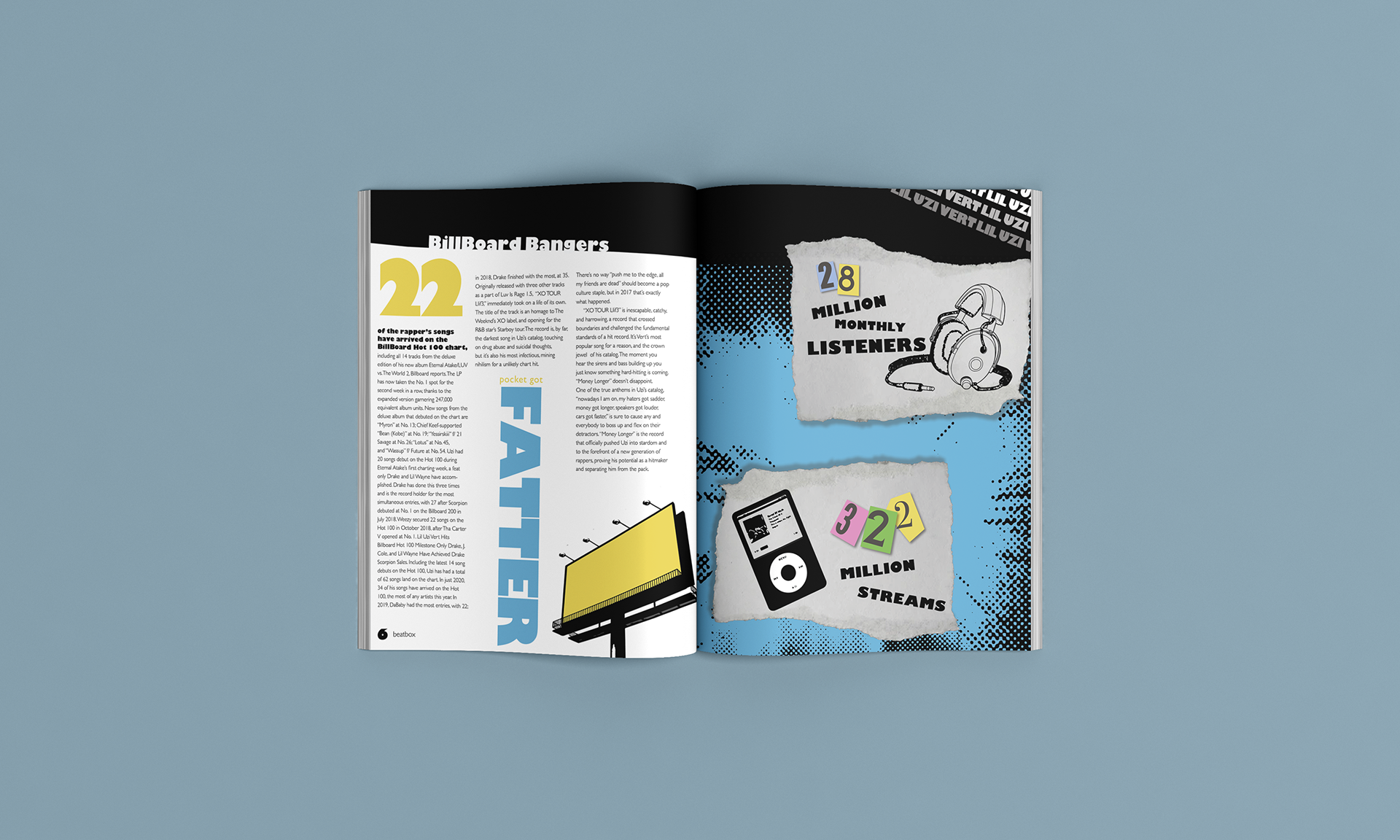 This punk rock-influenced catalog is all about Philadelphia's own edgy hip-hop artist, Lil Uzi Vert. Much like Uzi's music, this catalog breaks grids and traditional norms through an artistic approach. Using a vintage punk-inspired color palette along with editorial-grade imagery makes the pages of this project pop while engaging the reader. The design of this piece exemplifies the possibilities of approaching holistic design in an innovative way.